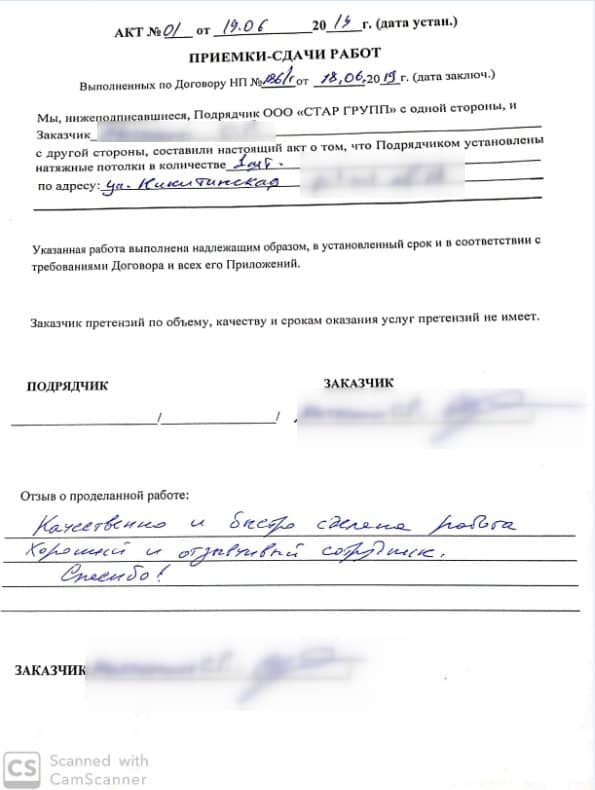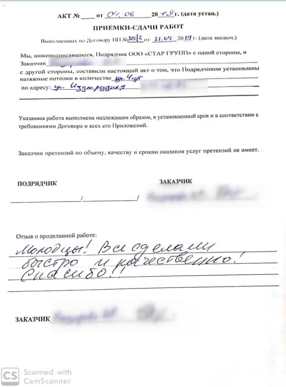 Все работы выполнены в срок и качественно. Спасибо мастерам.